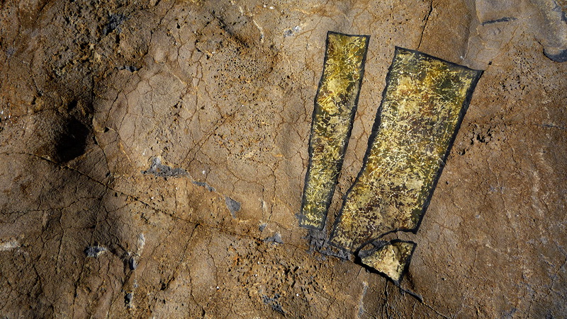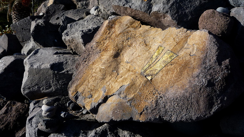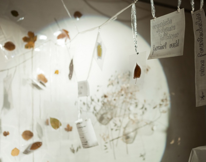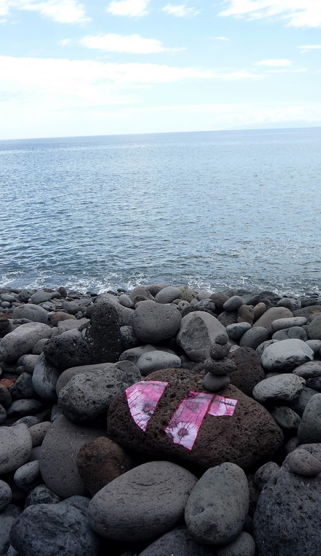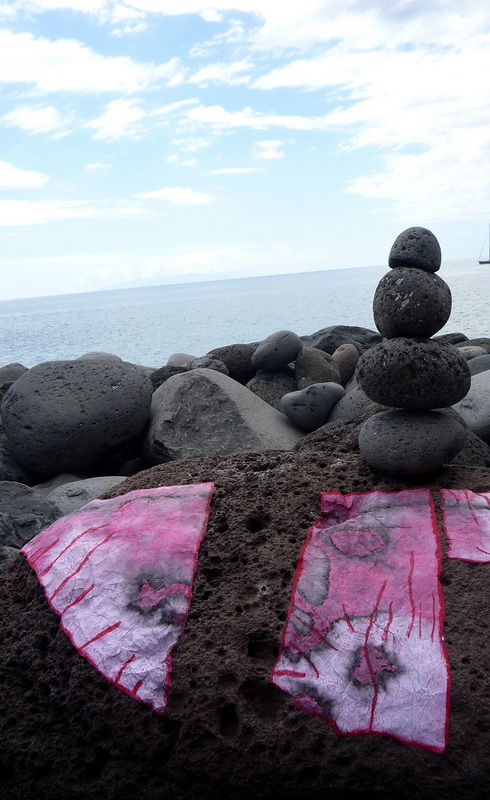 werke werden mithilfe von biologisch- abbaubarem kleber an steine befestigt und interagieren mit ihrer umgebung.